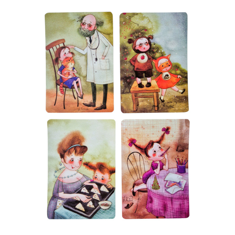 Cardurile sunt destinate atât utilizării profesionale, cât și folosirii în familie. Ilustrațiile sunt realizate de artista rusă Victoria Kirdiy.